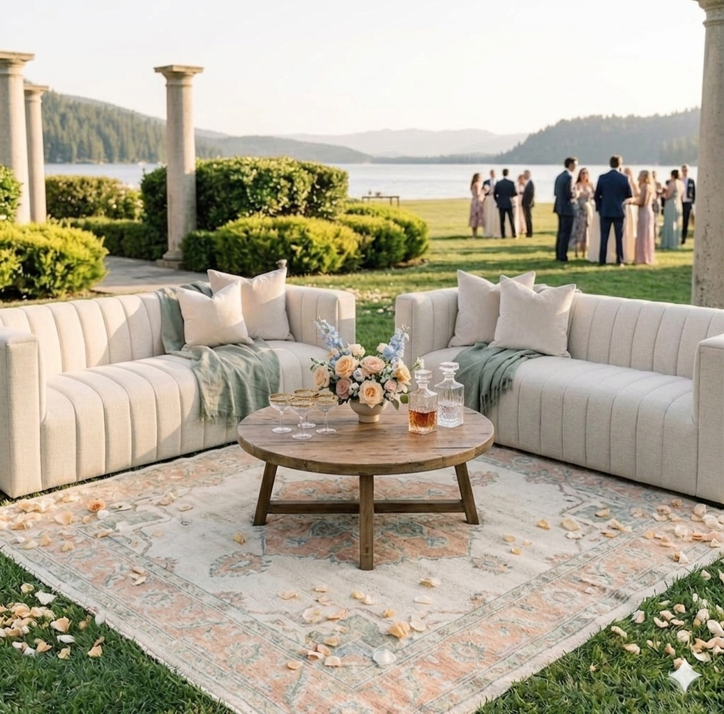 Effortlessly elegant and endlessly versatile — the Newport Sofa brings the relaxed luxury of coastal living to your wedding or event.